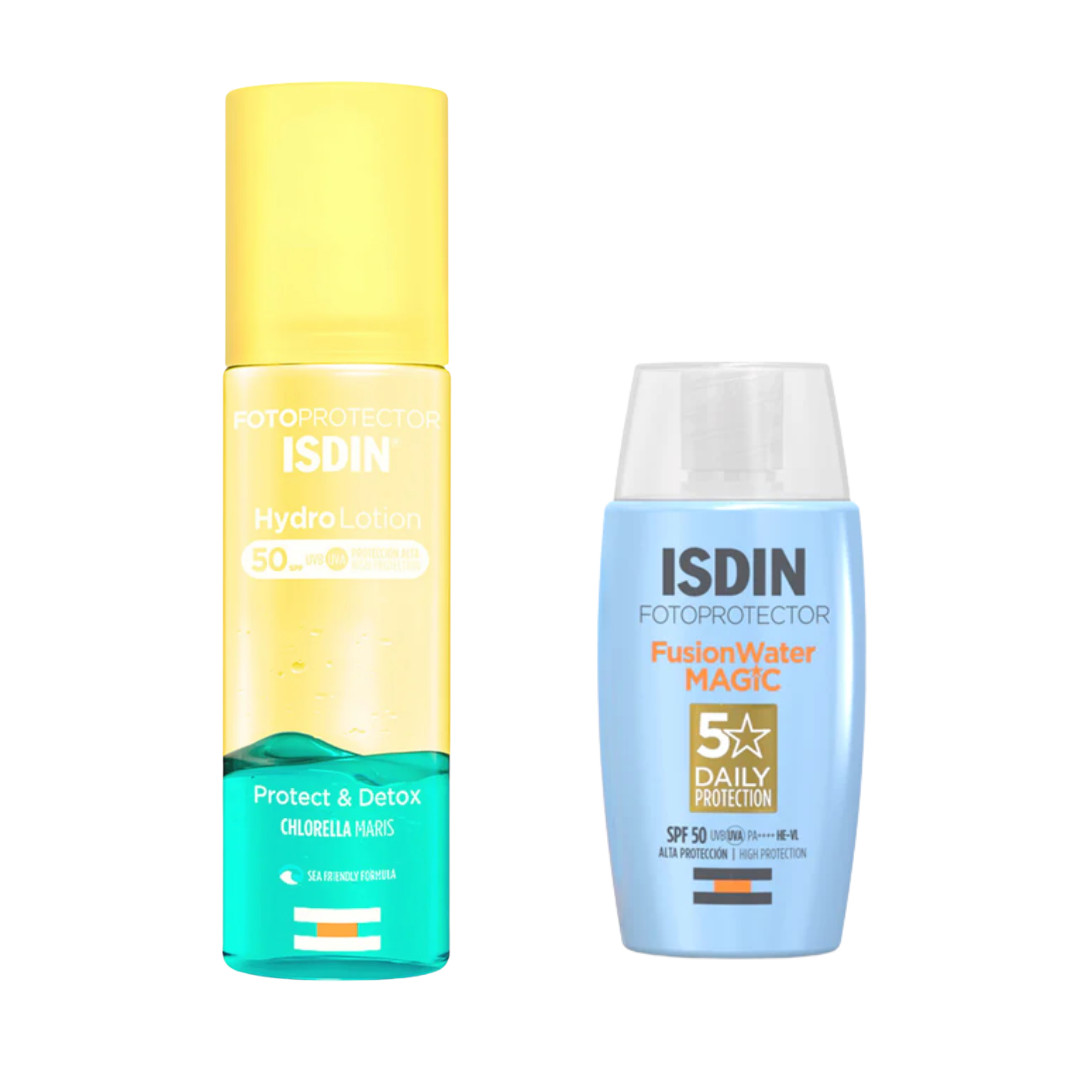 Fotoprotector corporal bifásico hidratante de secado inmediato. Con Chlorella Maris que evita la oxidación de la piel. Alta protección UVB/UVA SPF50.
